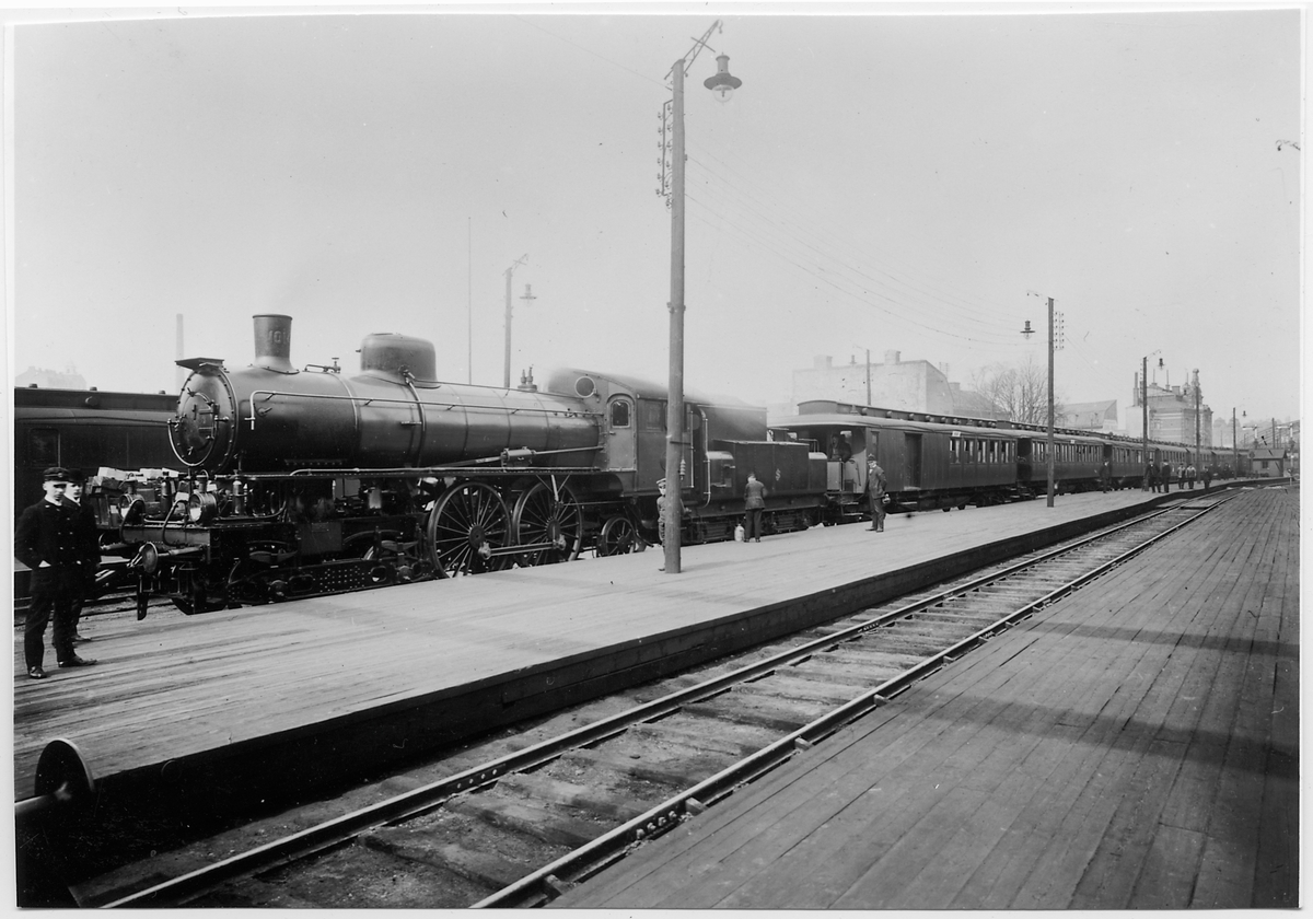 Persontåg draget av Statens Järnvägar, SJ A 1014 vid Stockholm C.
