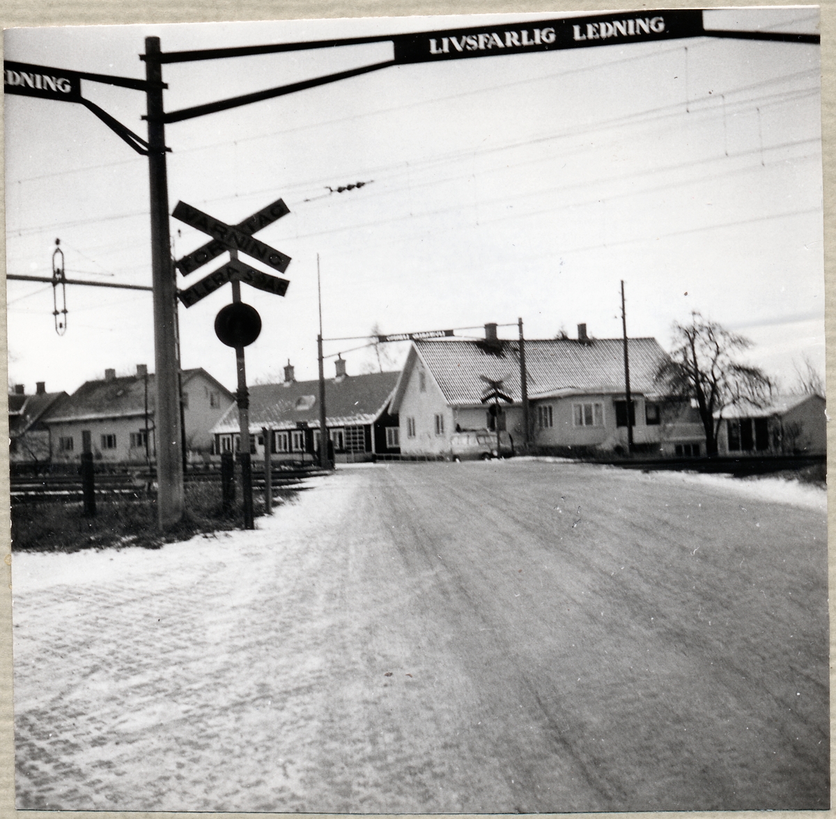 Järnvägsövergång vid bangården på Påarp station, på sträckan mellan Ramlösa Brunn och Mörarp.