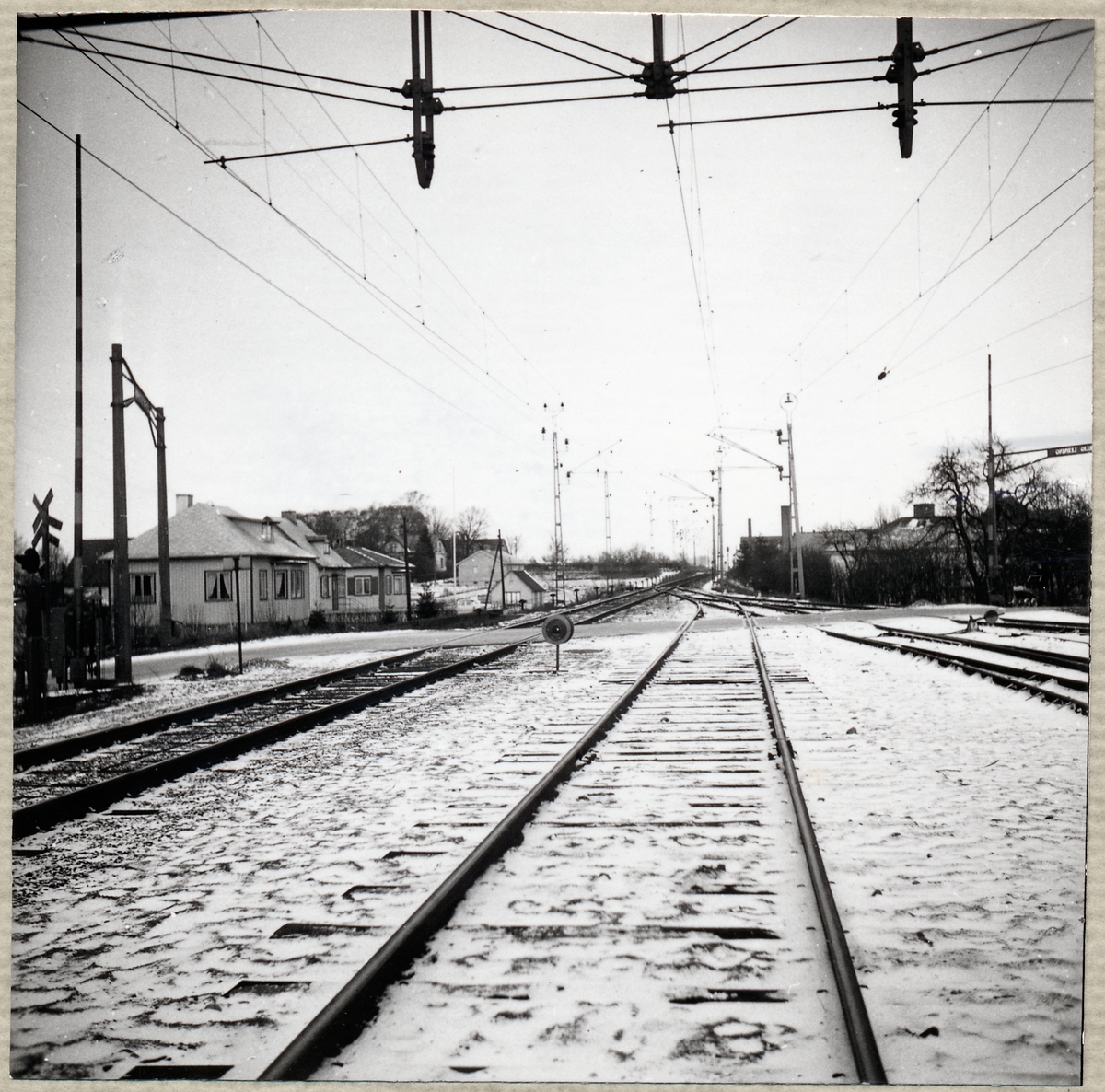 Järnvägsövergång vid bangården på Påarp station, på sträckan mellan Ramlösa Brunn och Mörarp.