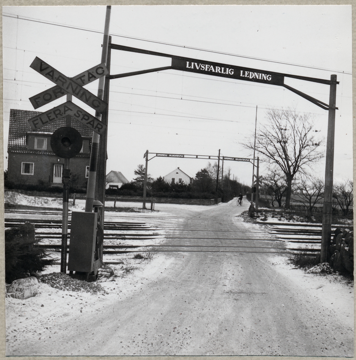 Järnvägsövergång vid bangården på Påarp station, på sträckan mellan Ramlösa Brunn och Mörarp.