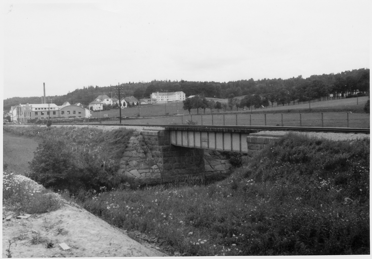 Bro över Häggån på sträckan mellan Kinnahult och Fritsla, sett mot Kinnahult.