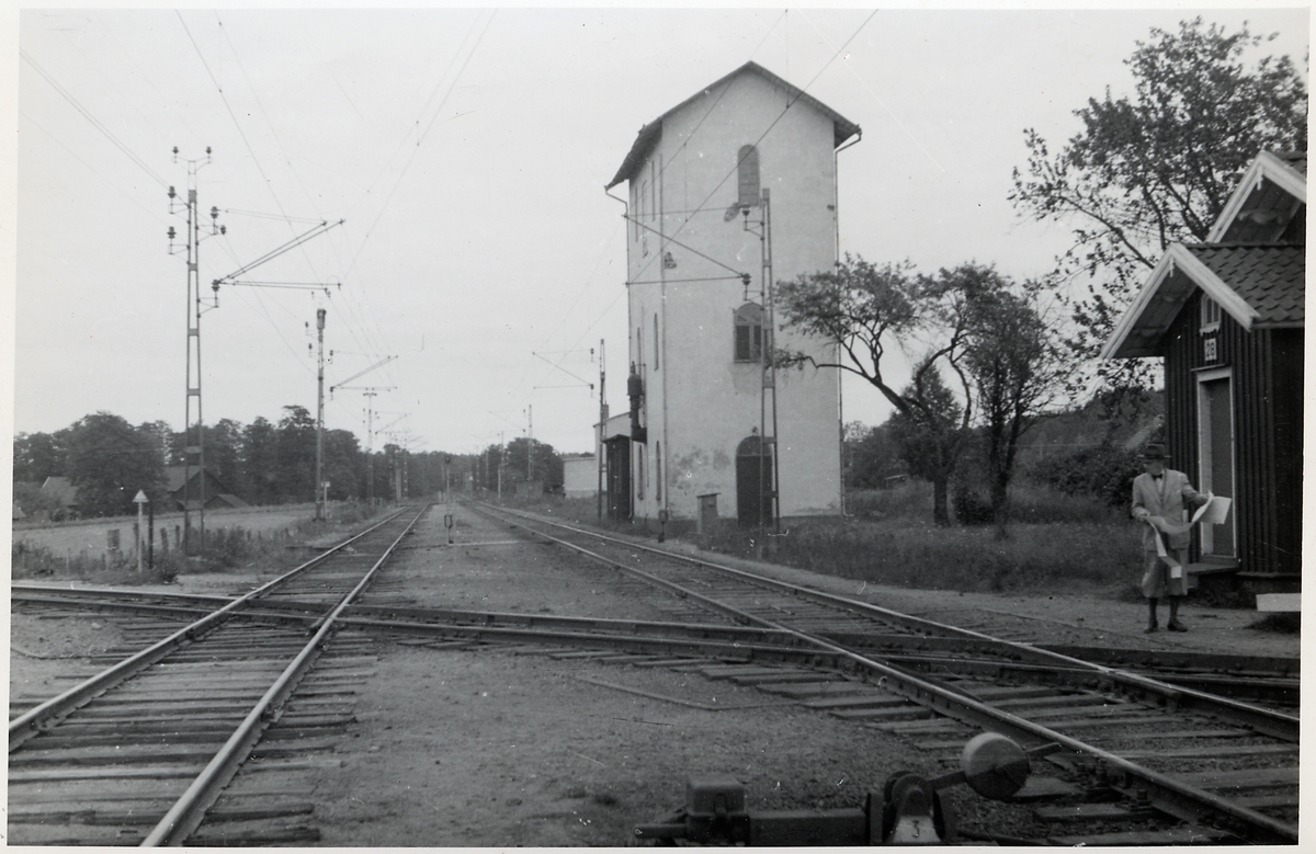 Korsningen mellan Älvsborgsbanan och Västra stambanan, vid Herrljunga station. Här på västra stambanan i riktning mot Falköping.