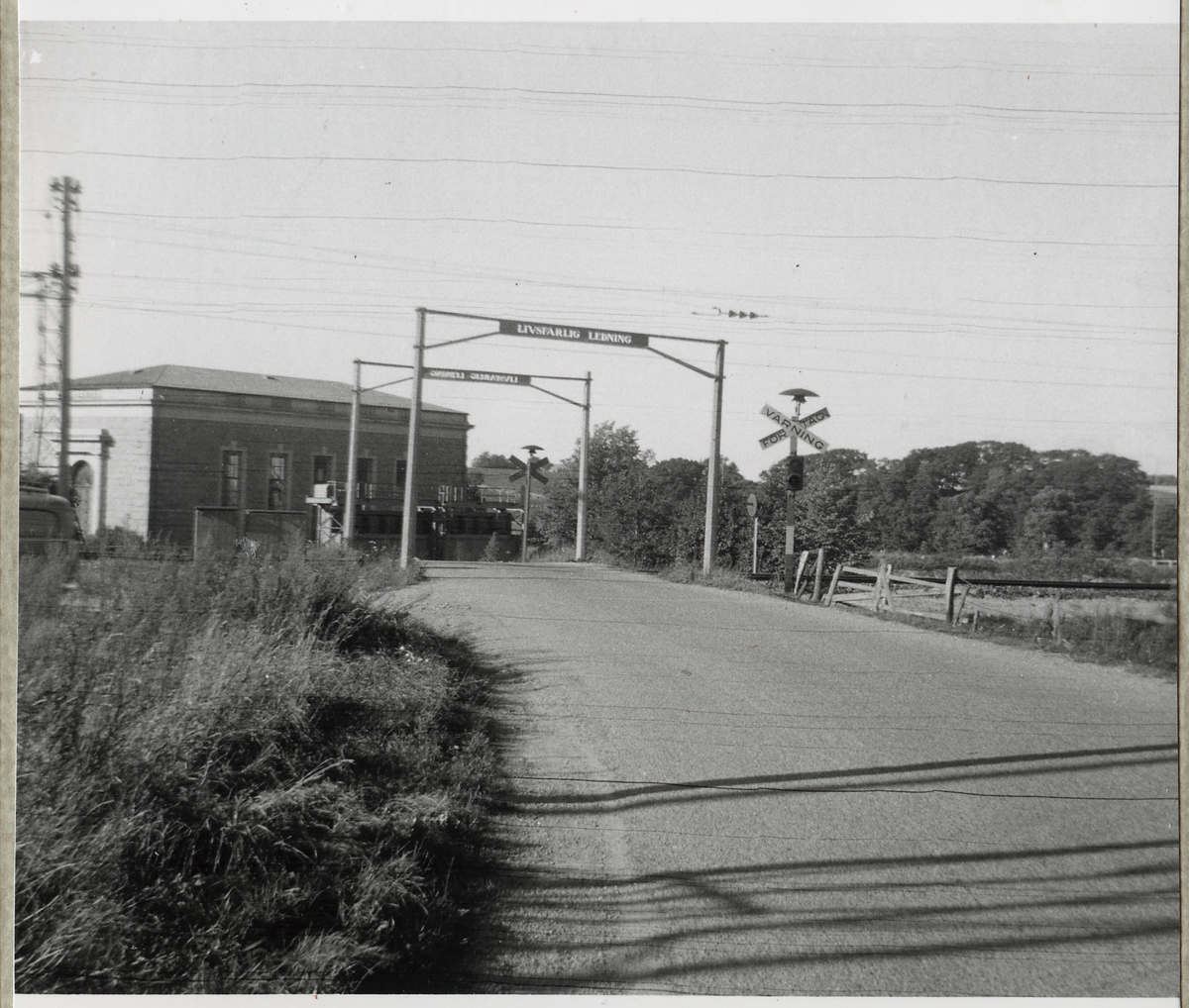 Järnvägsövergång vid Laholms kvarn på linjen mellan Veinge och Laholm.