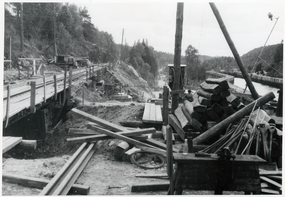 Vägport under byggnad vid Viskafors, på sträckan mellan Rydboholm och Svaneholm.