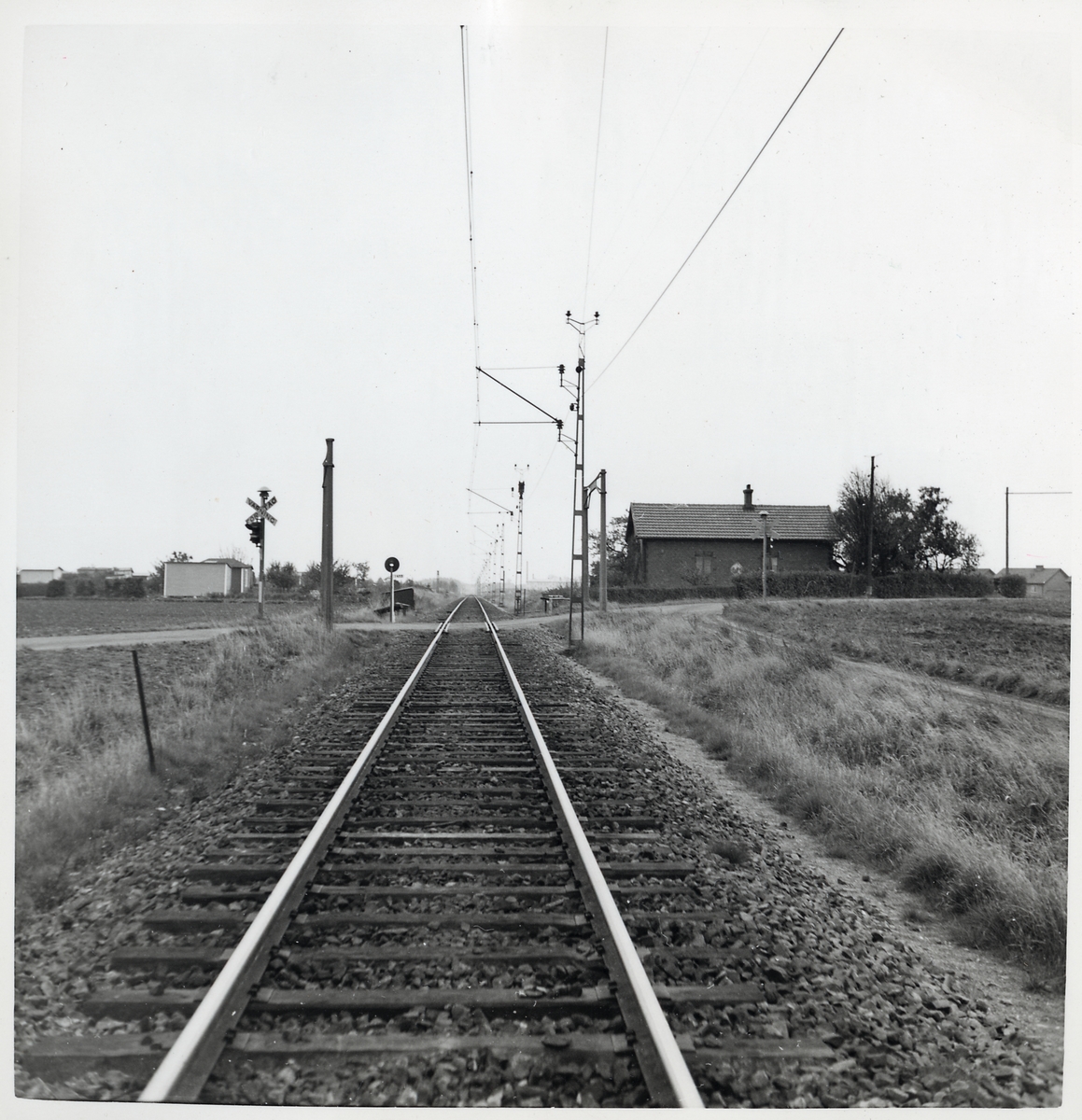 Järnvägsövergång vid Petersborgsvägen på linjen Skytts Vemmerlöv-Trelleborg. Banvaktstuga Petersberg (544).