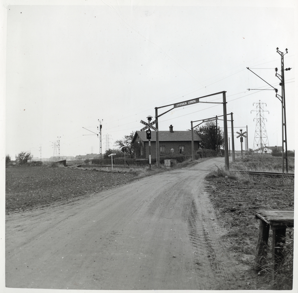 Järnvägsövergång vid Petersborgsvägen på linjen Skytts Vemmerlöv-Trelleborg. Banvaktstuga Petersberg (544).
