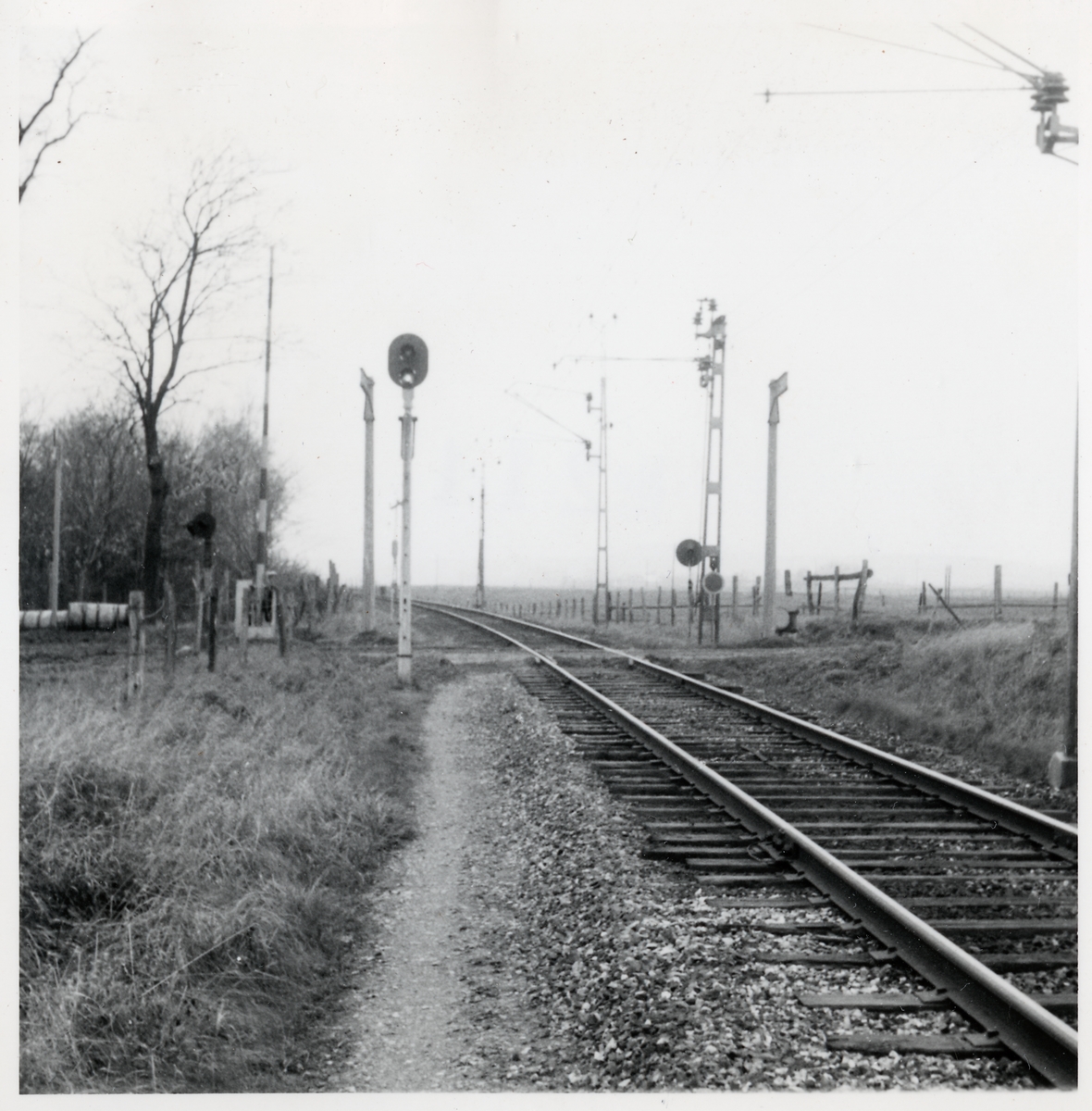 Järnvägsövergång vid Årup på sträckan mellan Billeberga och Teckomatorp.