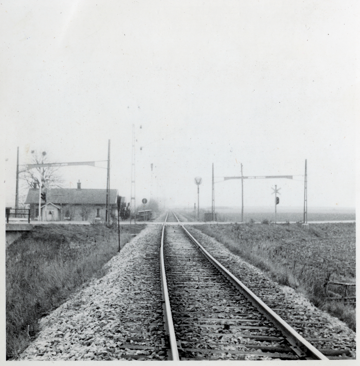 Järnvägsövergång, vid banvaktstuga väster om Marieholm på sträckan mellan Teckomatorp och Marieholm.