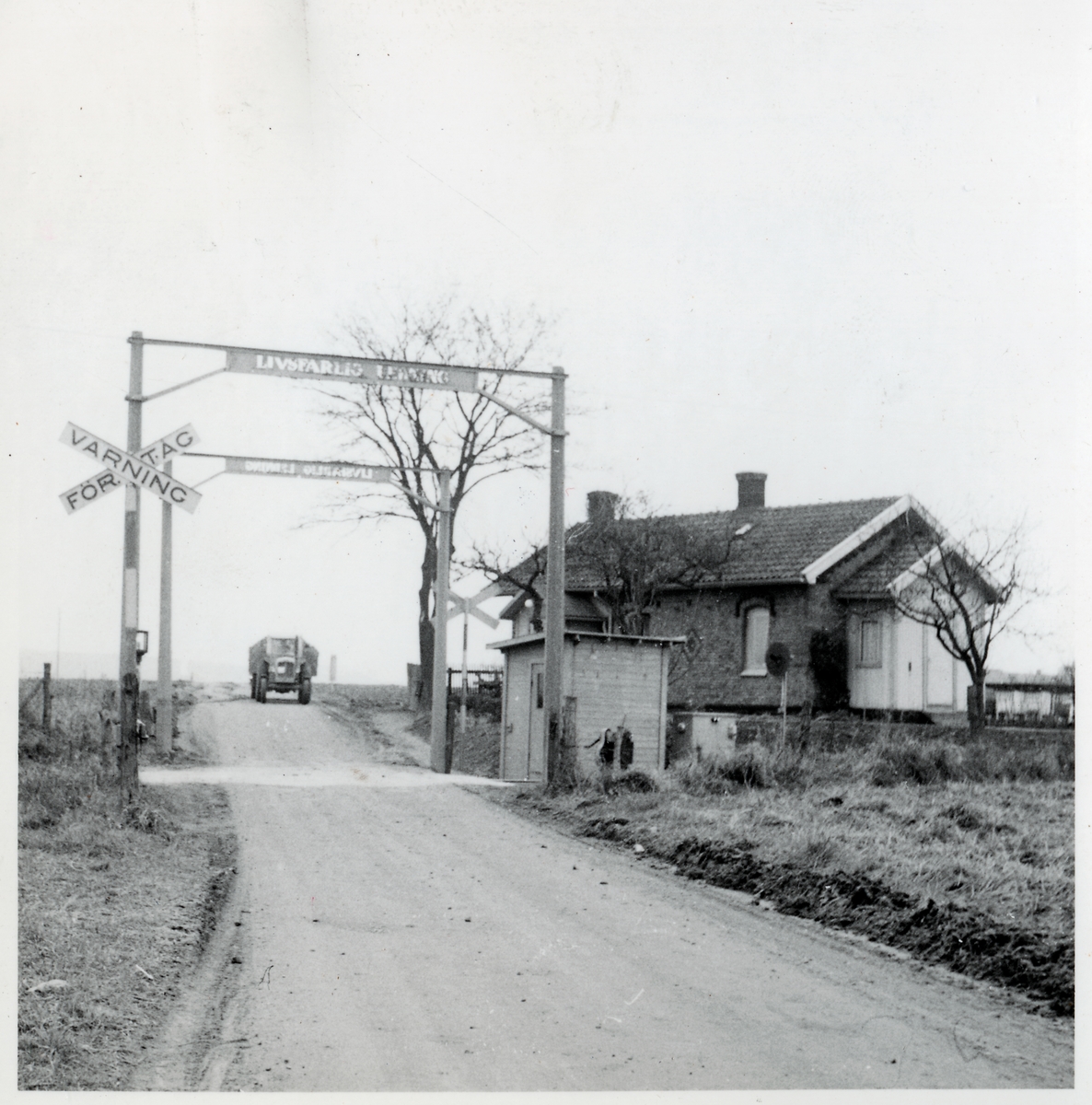 Järnvägsövergång på sträckan mellan Marieholm och Trollenäs. Till höger syns Reslöv banvaktsuga 624.