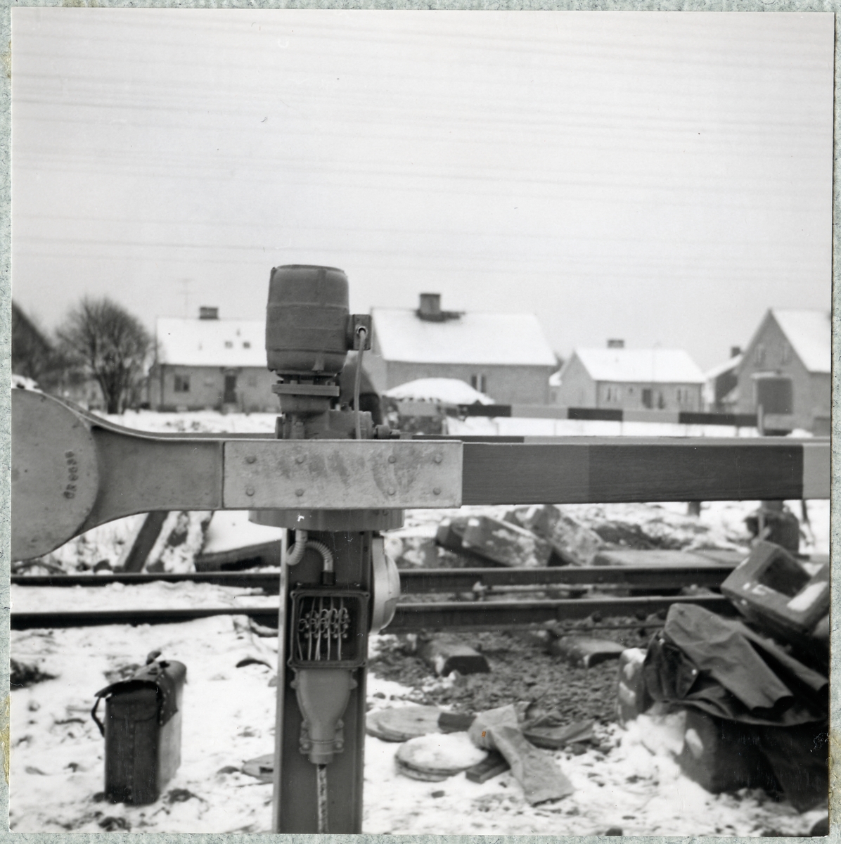 Titel: Järnvägsbom vid järnvägsövergång vid Hjortstigen i Ljungby, på sträckan mellan Lagan och Kärreberga.