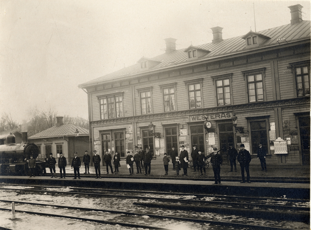 Inspektor Evald A. Gezelius med personal i Westerås 1908