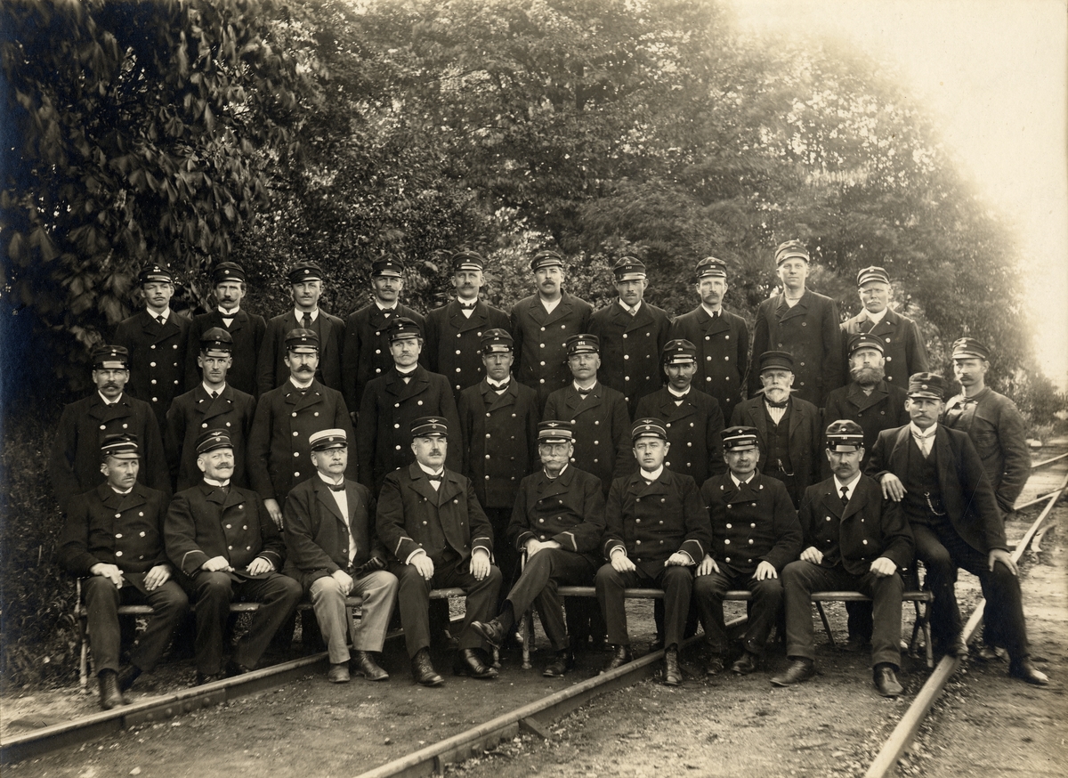 Inspektor Johan C. Johansson med personal i Köping 1912