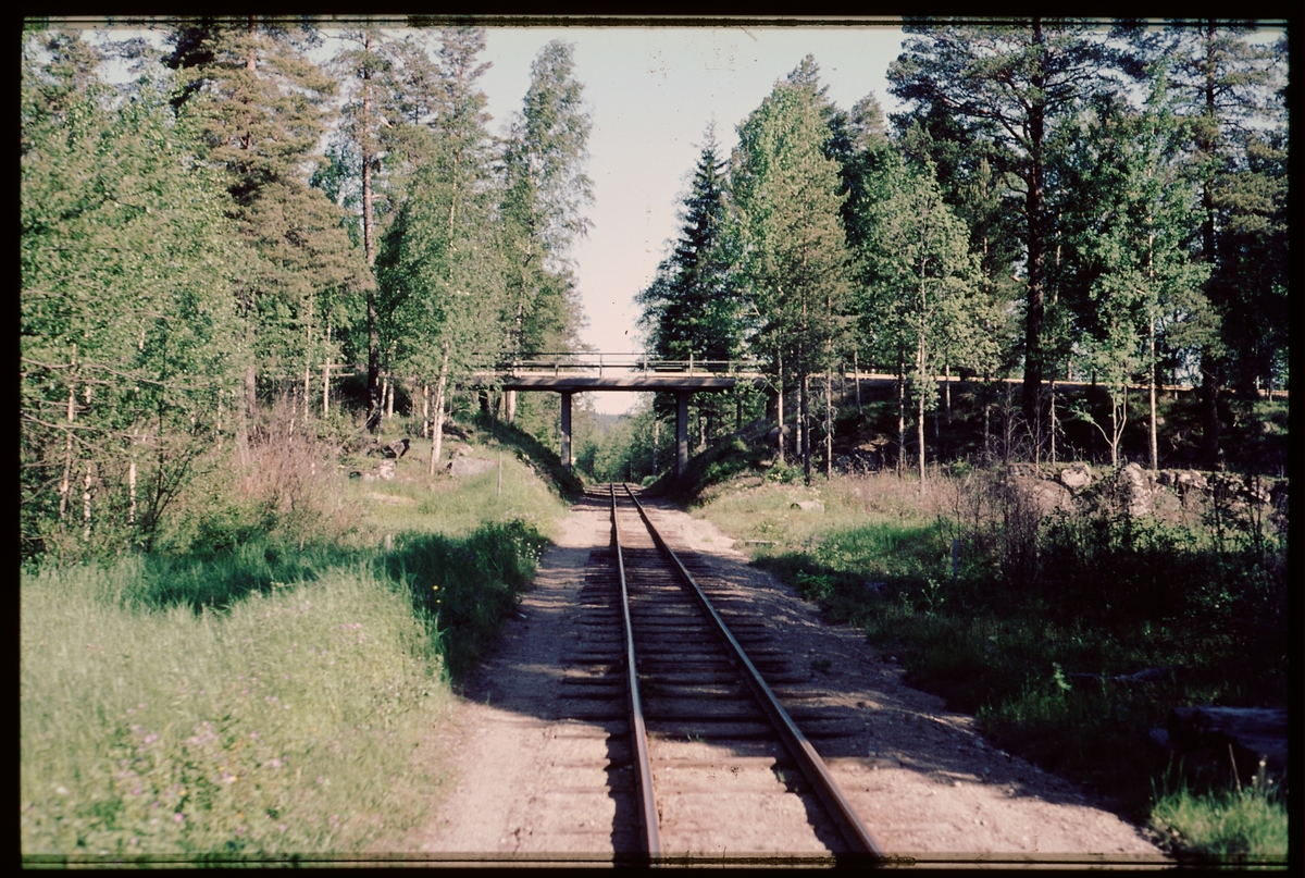 Planskild järnvägskorsning. HFJ Hällefors Fredriksbergs järnväg.