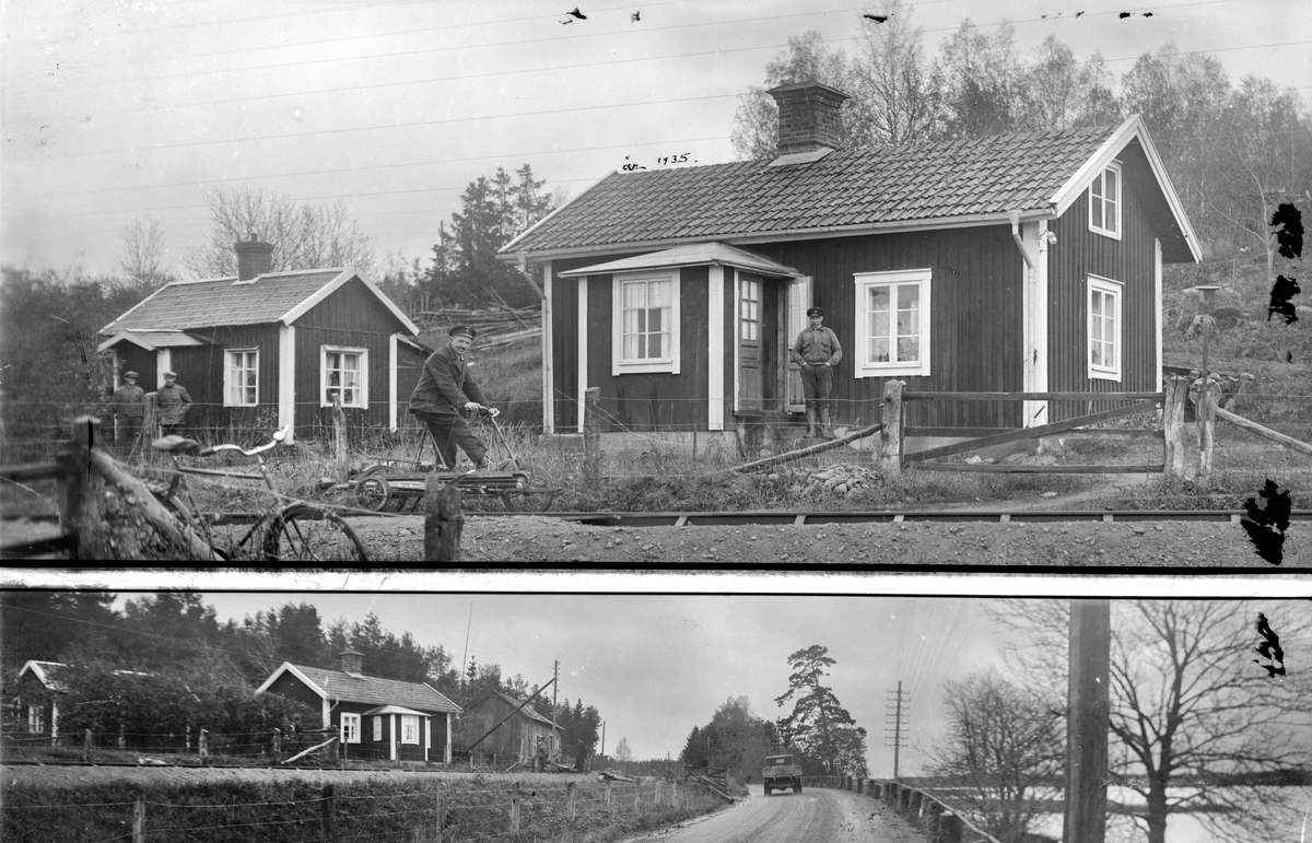 Nora Bergslagens Järnväg, NBJ banvaktsstuga. Tvådelad bild.