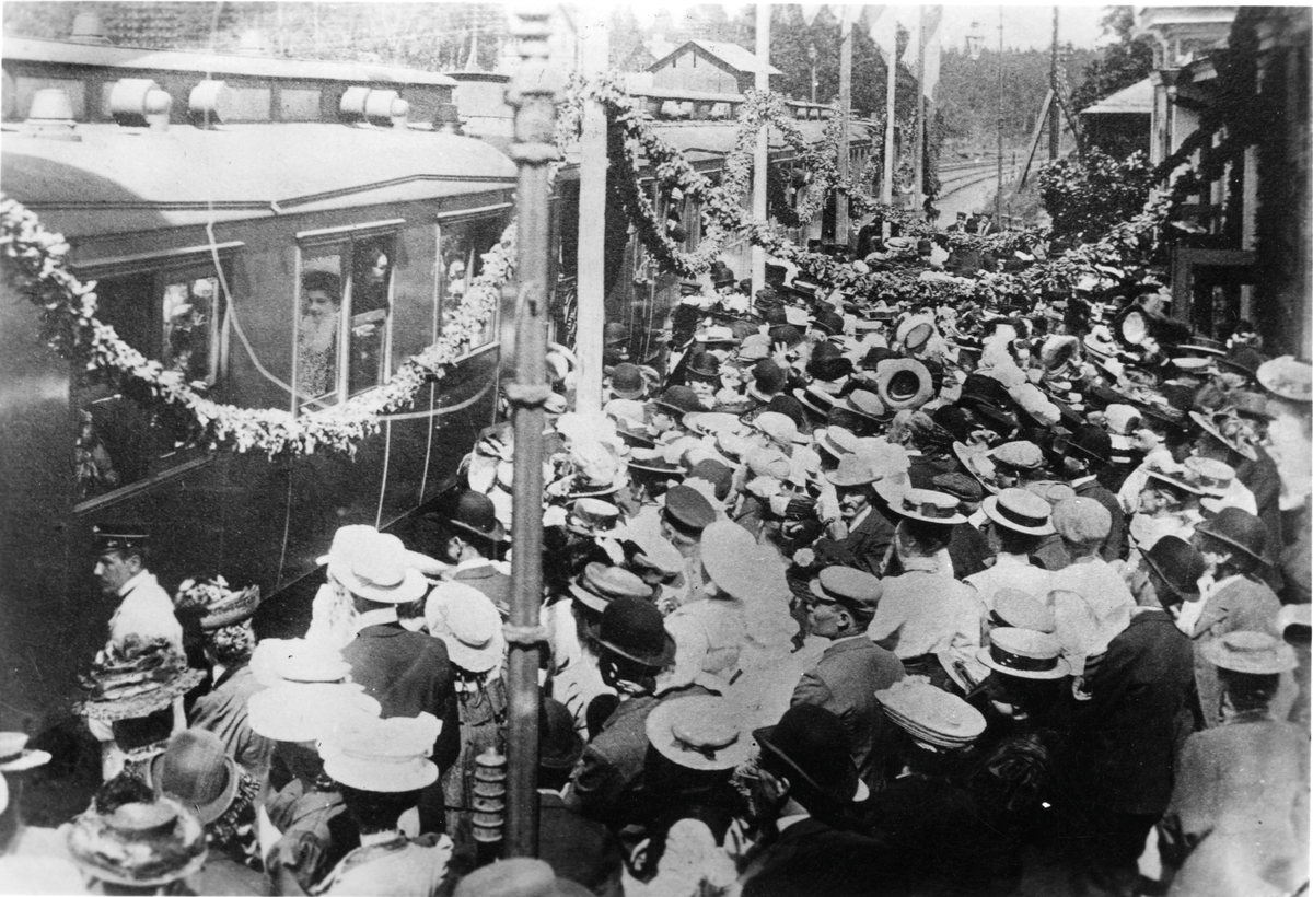 Prins Wilhelm och Prinsesan Maria vinkas av på Järna station.