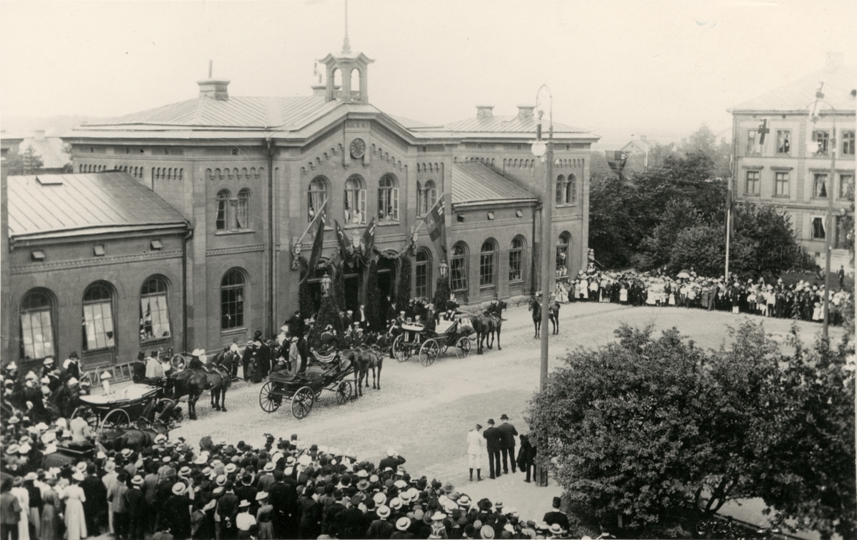 Mottagning av konung Oscar II vid Örebro station.