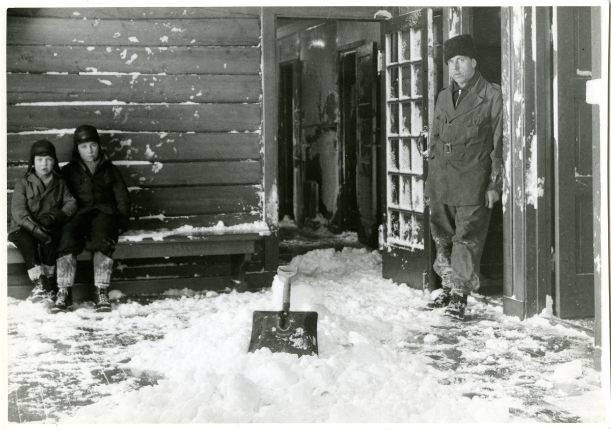 Peisestugan i "Bergbaracken" snöröjd efter snöskred.