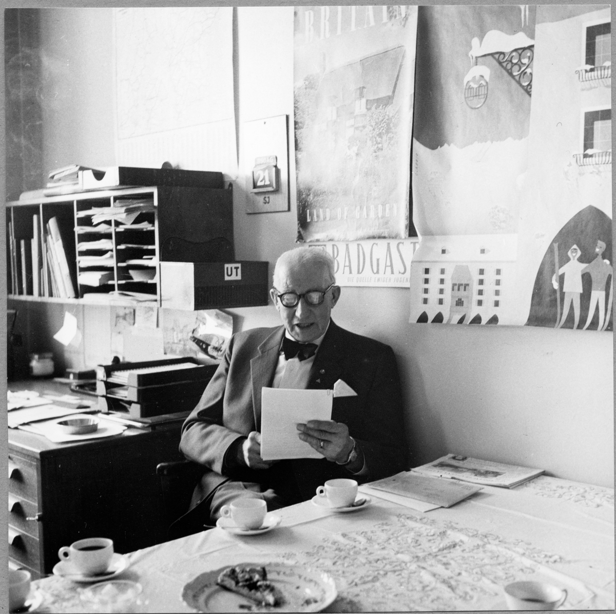 Pensionerade lokföraren Abraham Seimitz besöker Press och Järnvägsstyelsen. Statens Järnvägar, SJ.