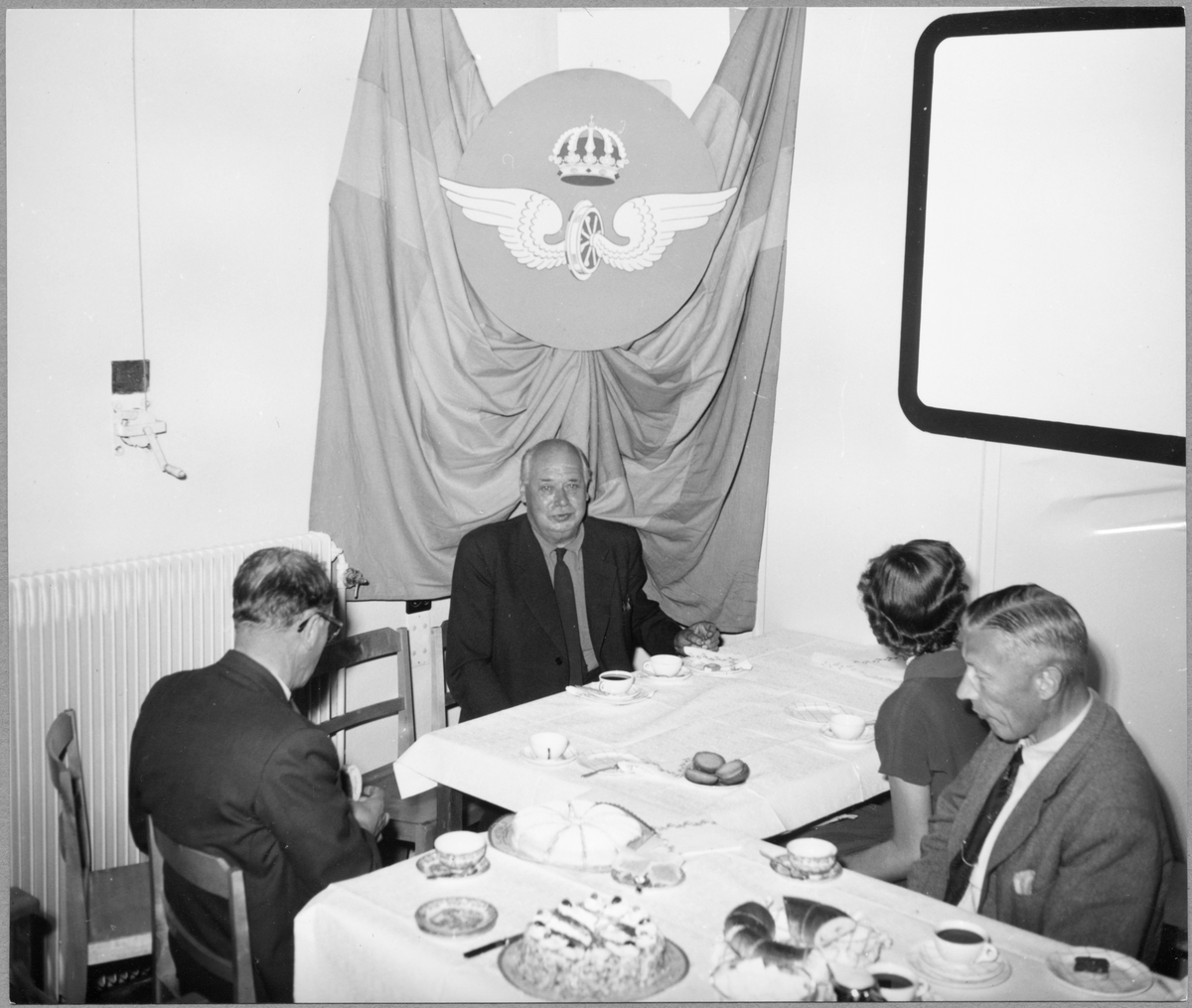 Ingenjör Per Martin Östner avtackas med kaffe och tårta. Statens Järnvägar, SJ.