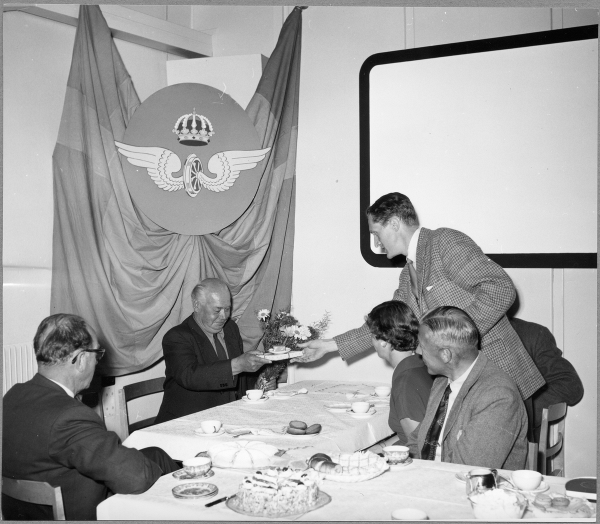 Ingenjör Per Martin Östner avtackas med kaffe och tårta. Statens Järnvägar, SJ.