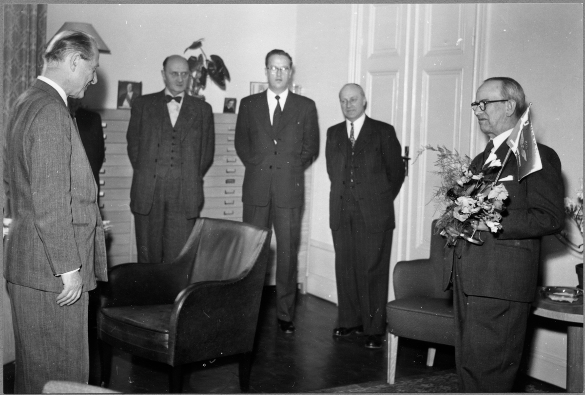 Expeditionsföreståndare avtackas av sina arbetskamrater. Statens Järnvägar, SJ.