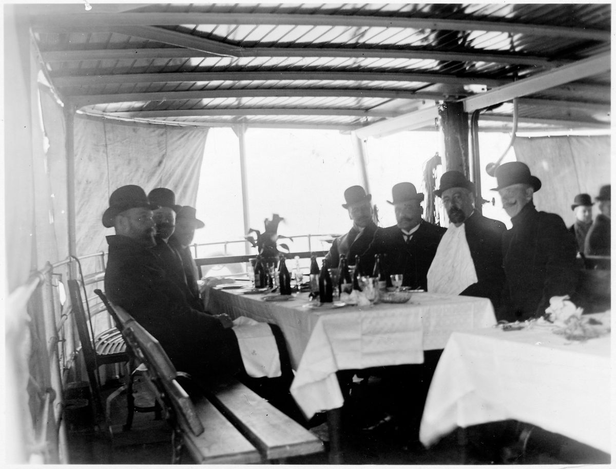 Titel: Statsbanornas personal på lustfärd med ångaren "Gustaf Adolf" till Nynäshamn.