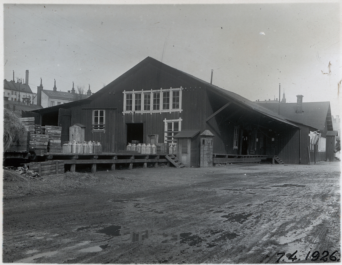 Magasin för avgående gods. Mjölkbehållare på lastbryggan.
