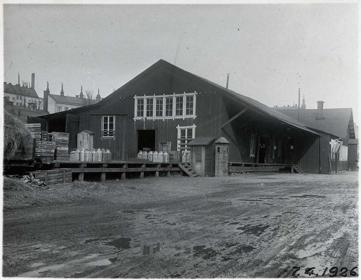 Magasin för avgående gods. Mjölkbehållare på lastbryggan.