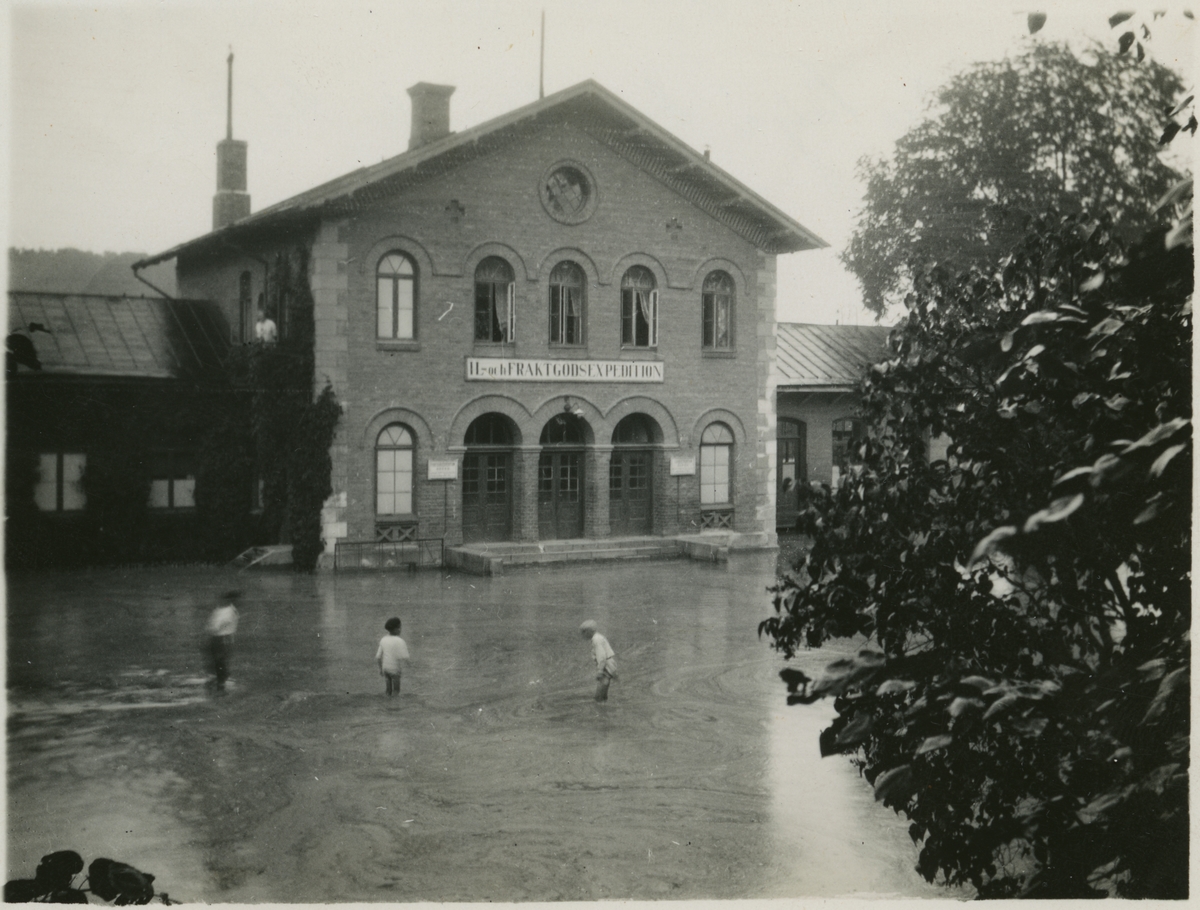 Översvämning vid Södertälje Station den 21 juli, 1925.