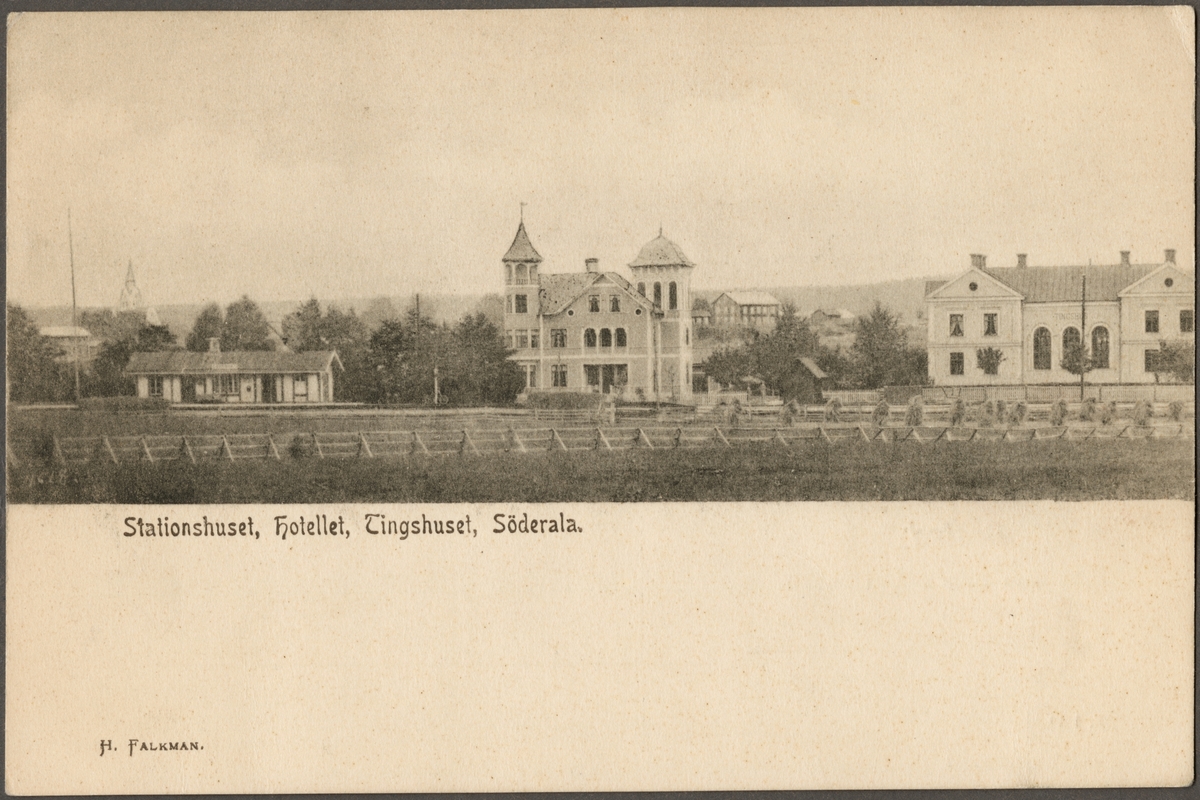 Vy på station vid hotell och tingshus.