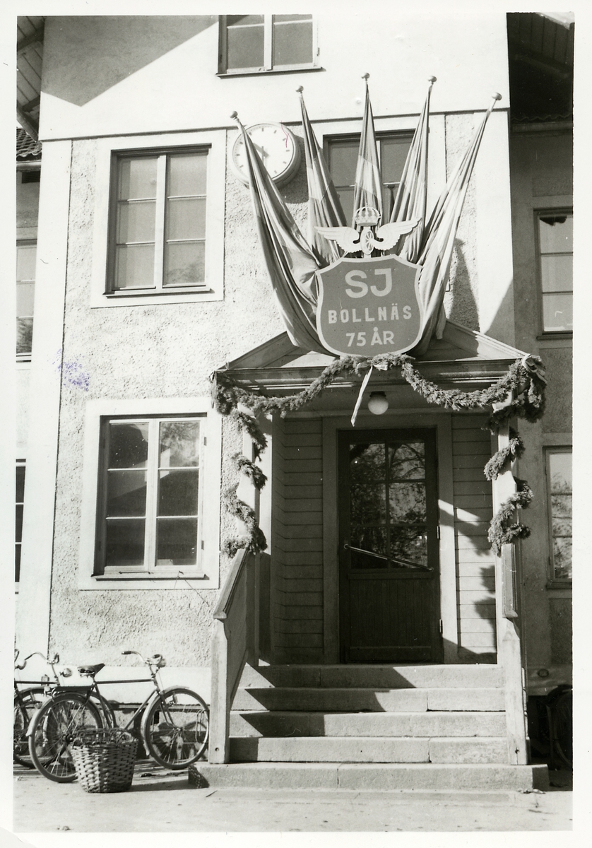Dekoration på järnvägsstationen i Bollnäs, 75 år efter det år järnvägen förbi Bollnäs byggdes.