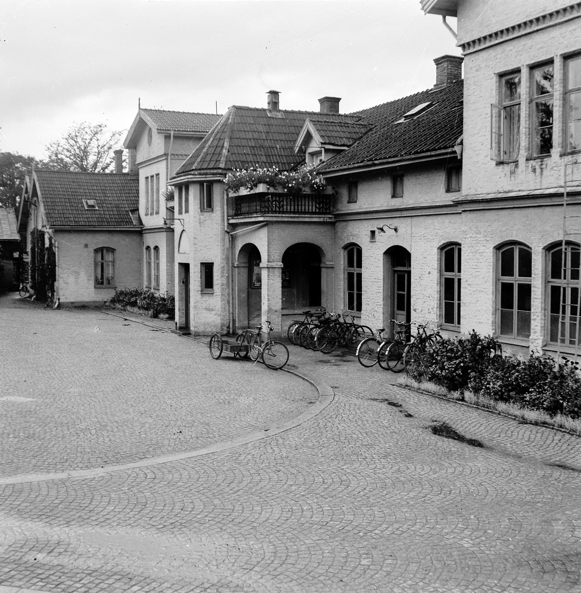 Herrljunga järnvägsstation sedd från samhället, gatusidan.