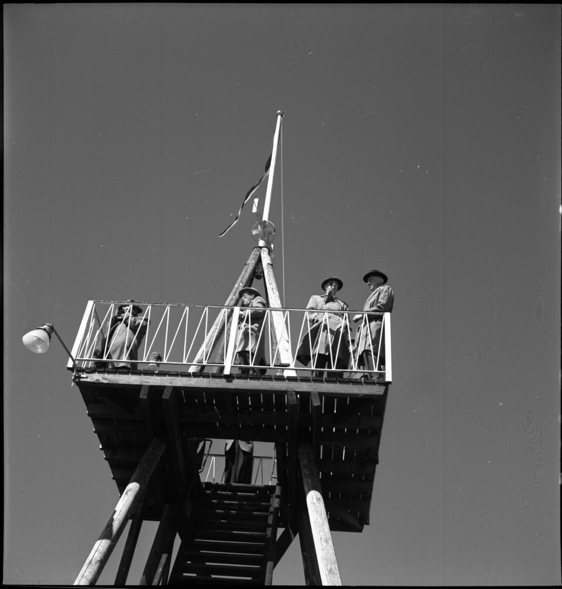 Utsiktstorn på Vårdkasberget, Härnösand. Elektrifiering, provtåg, linjen Härnösand - Sundsvall