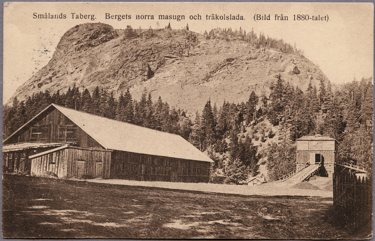 Smålands Taberg. Bergets norra masugn och träkolslada.