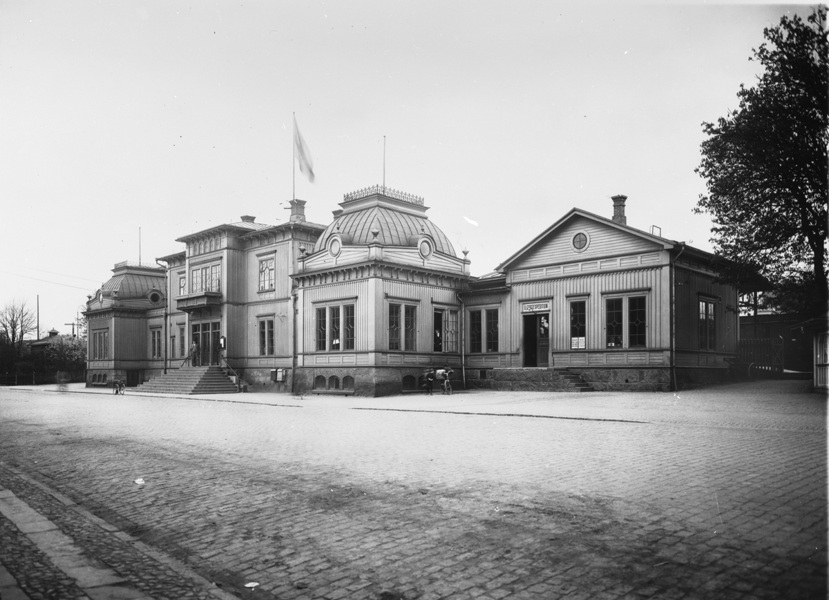Borås övre station sedd från gatusidan. Stationen uppfördes 1863 av BHJ, Borås-Herljunga järnväg. Till höger syns ingången till ilgodsexpeditionen.
