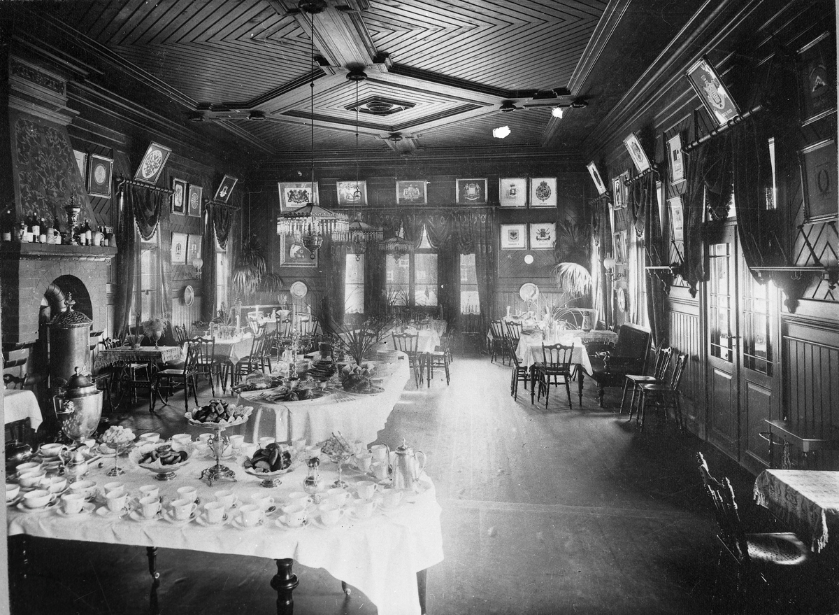 Interiör I och II kl matsal, järnvägsrestaurangen i Gnesta.