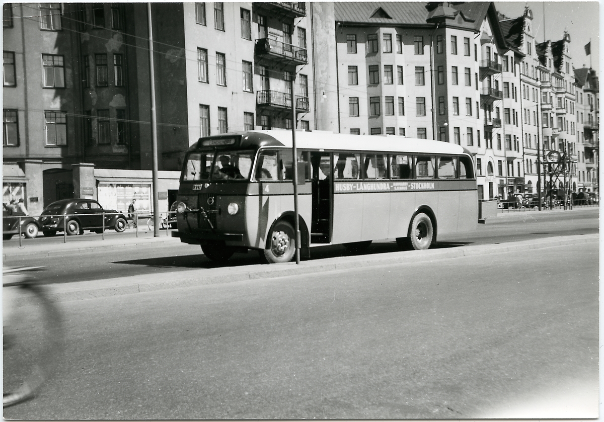 Buss som trafikerar linjen Husby - Långhundra - Stockholm.