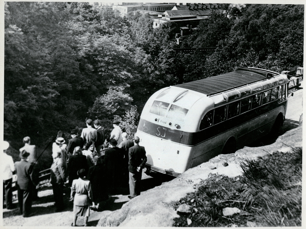 Statens Järnvägar, SJ turistbuss med utsikt över Gränna.