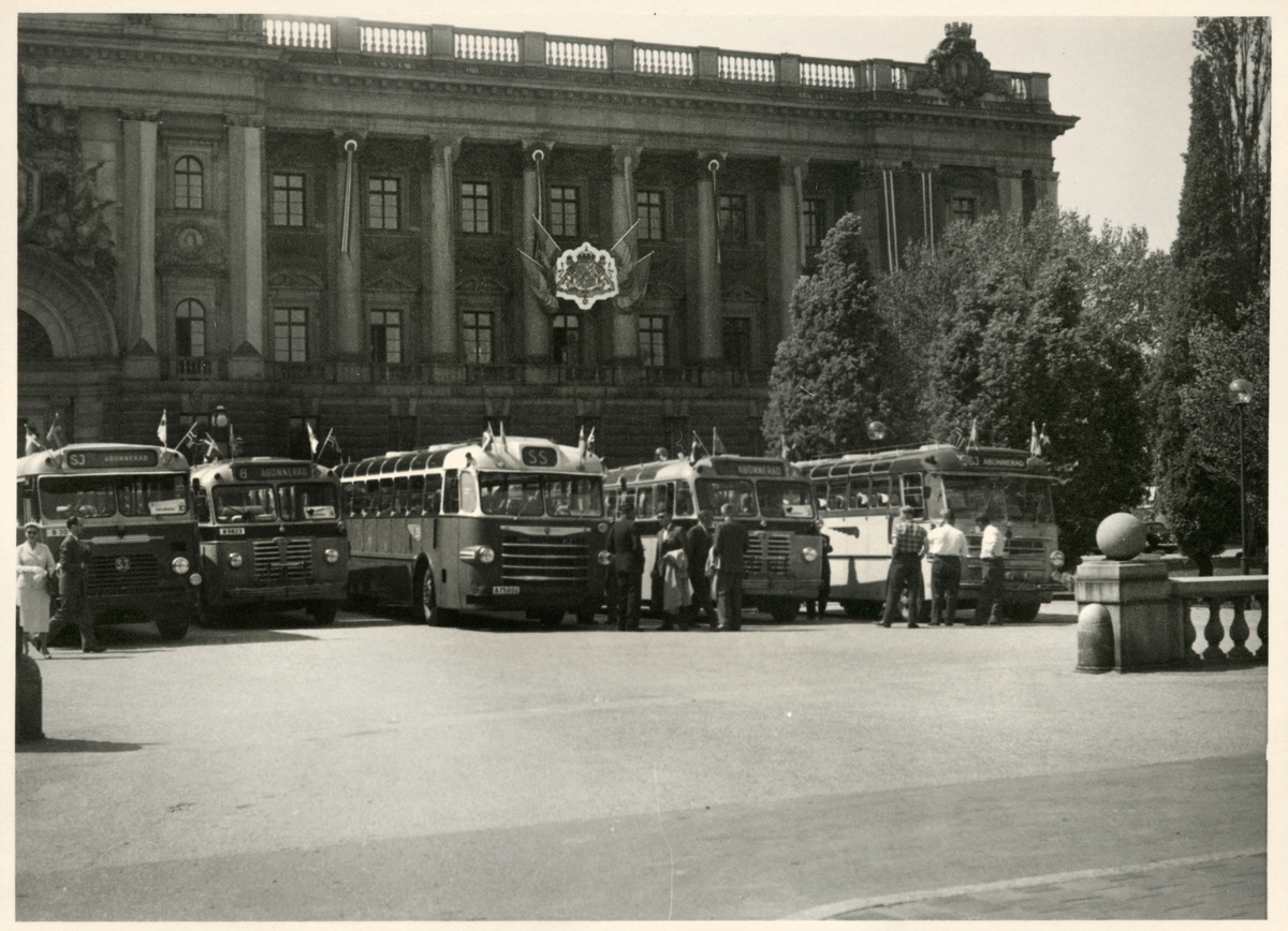 Turistbussar uppställda vid Riksdagshuset i Stockholm.