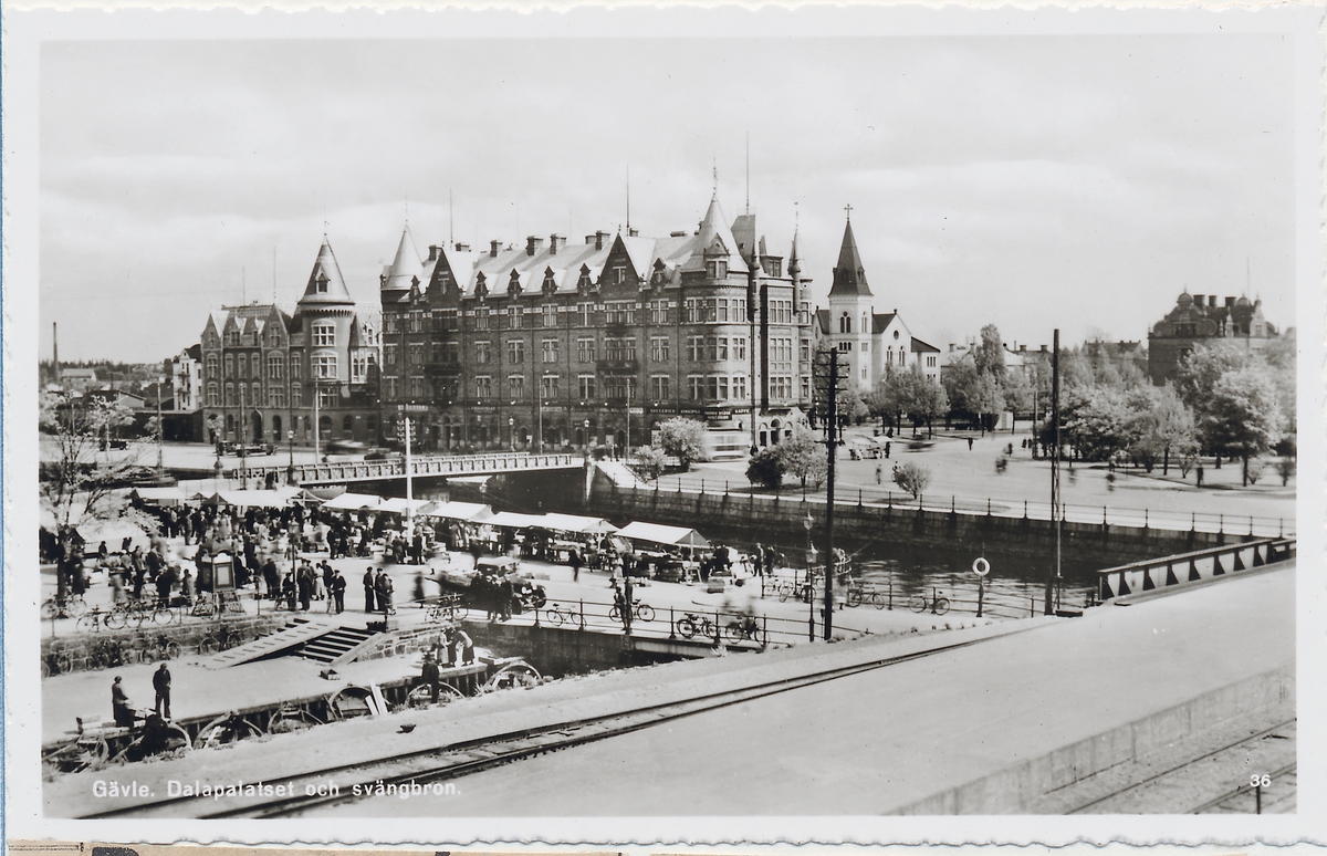 Gävle. Svängbron, Dalapalatset och Gavleån sett från centralstationen.