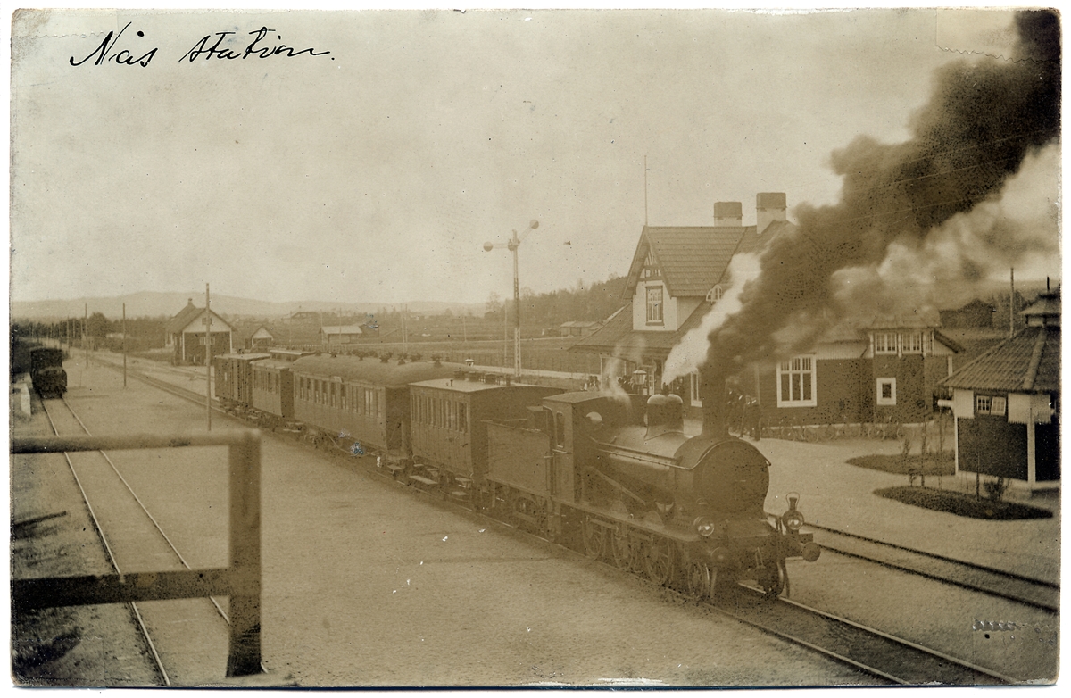 Nås station. Stockholm - Västerås - Bergslagens järnvägars ånglok SWB L 47.
