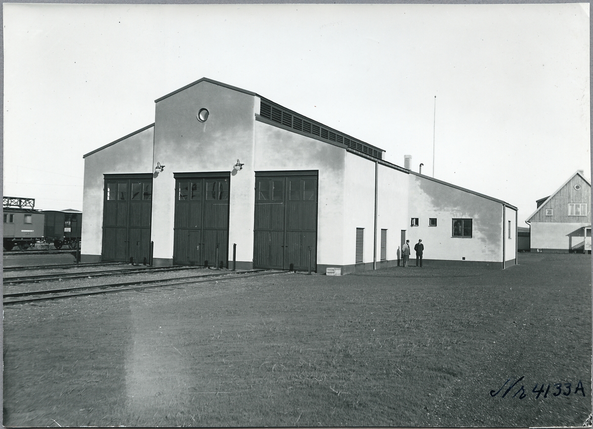 Omformarstationen i Laholm. På bilden syns även en del av ett boställshus.