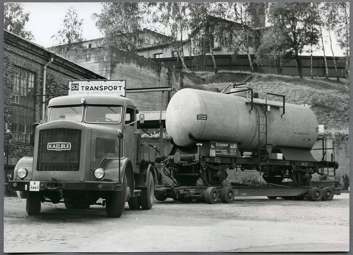 Statens Järnvägar, SJ Q12 506064, transporteras enligt Statens Järnvägars "dörr till dörr" koncept.