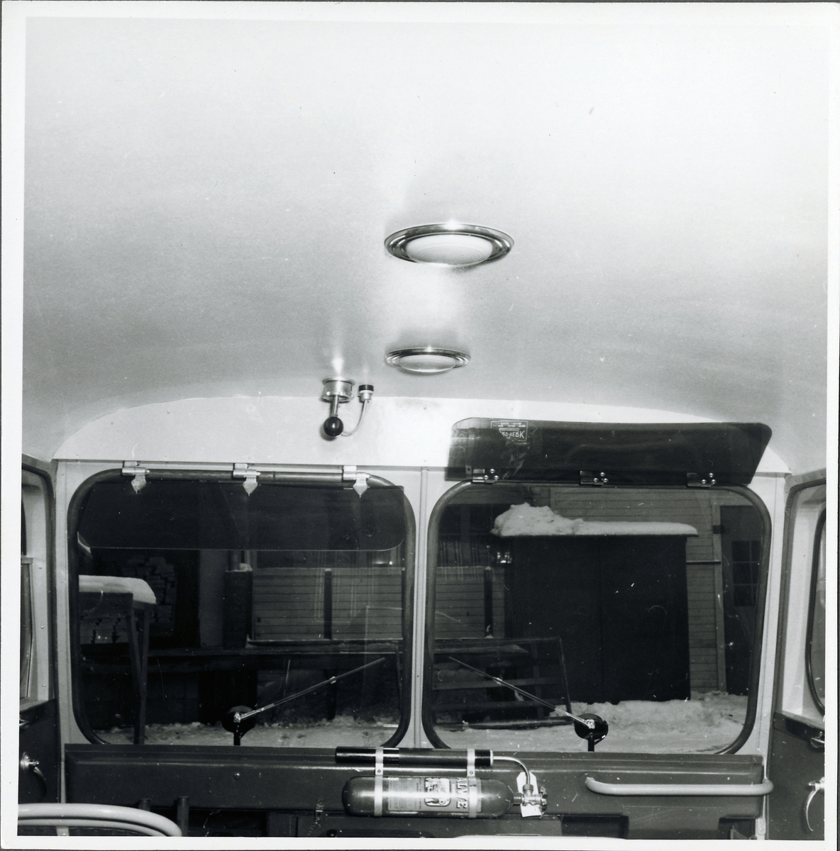 Interiören av den så kallade "snöbussen", för Statens Järnvägar tillverkad av Svenska Karosseriverken i Katrineholm.