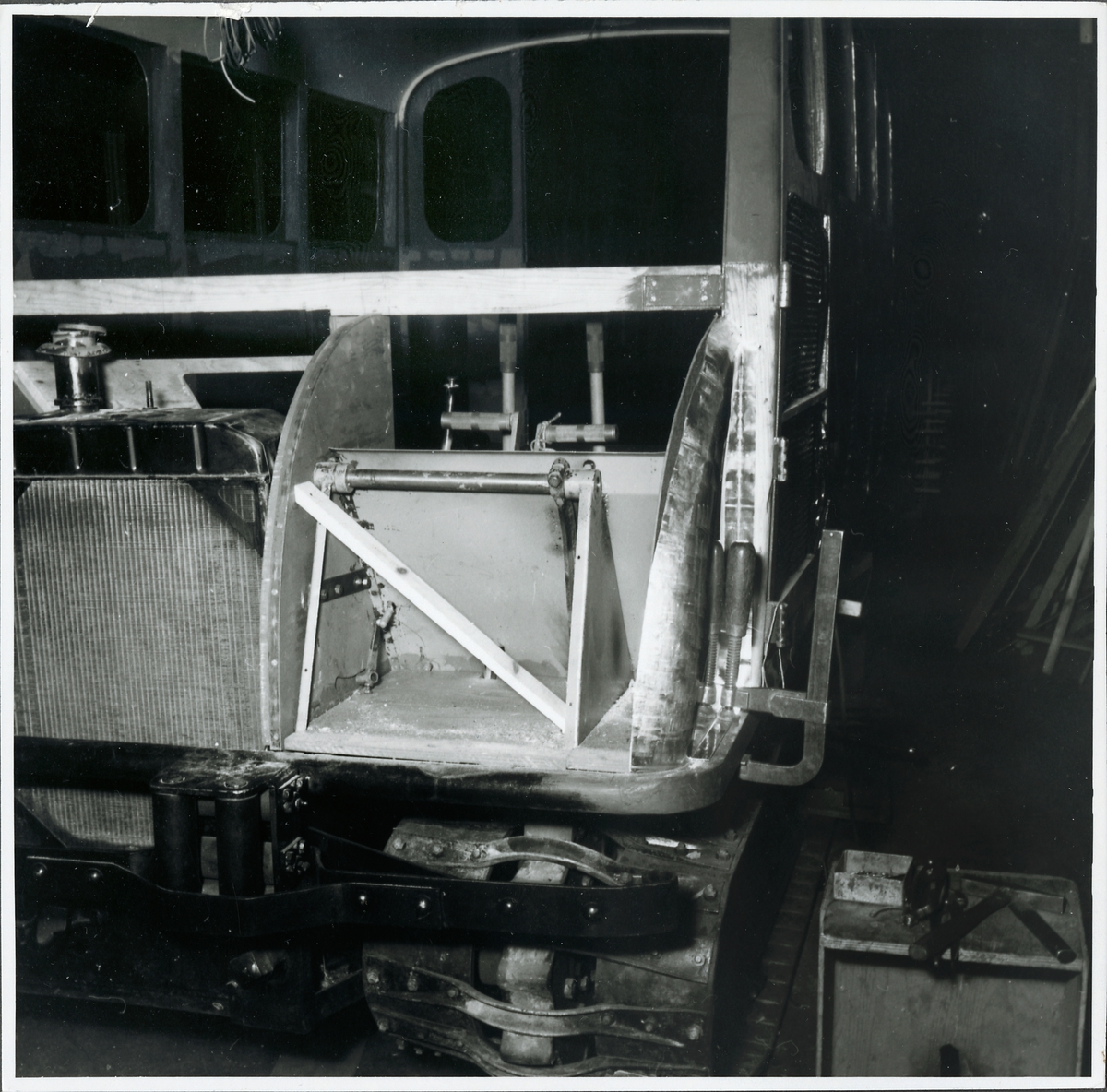 Framparti av den så kallade "snöbussen", för Statens Järnvägar tillverkad av Svenska Karosseriverken i Katrineholm.