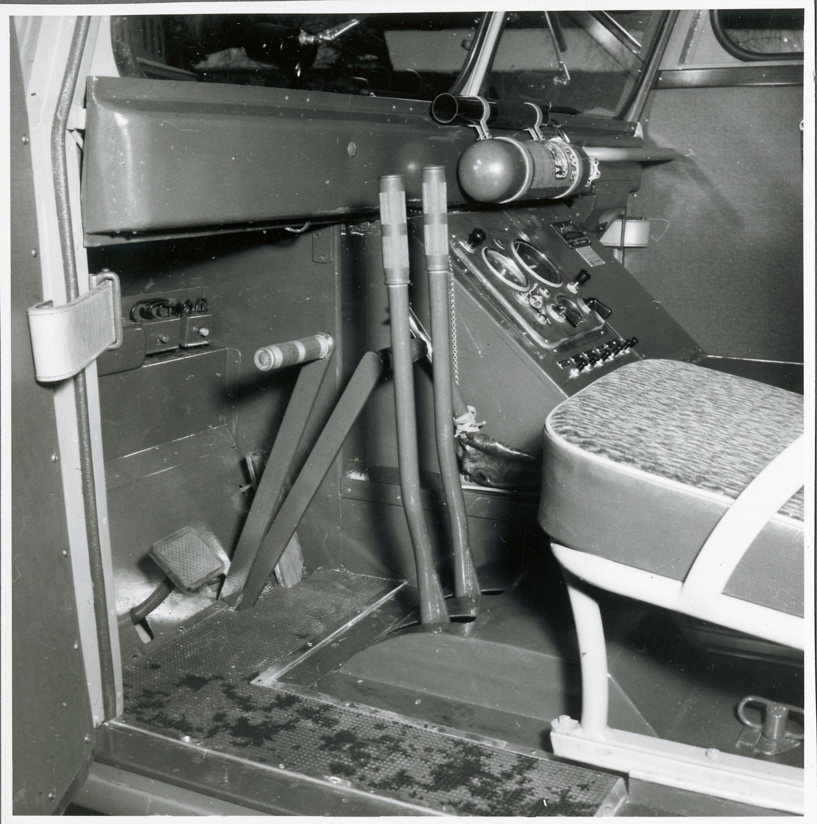 Förarutrymmet i den så kallade "snöbussen", för Statens Järnvägar tillverkad av Svenska Karosseriverken i Katrineholm.