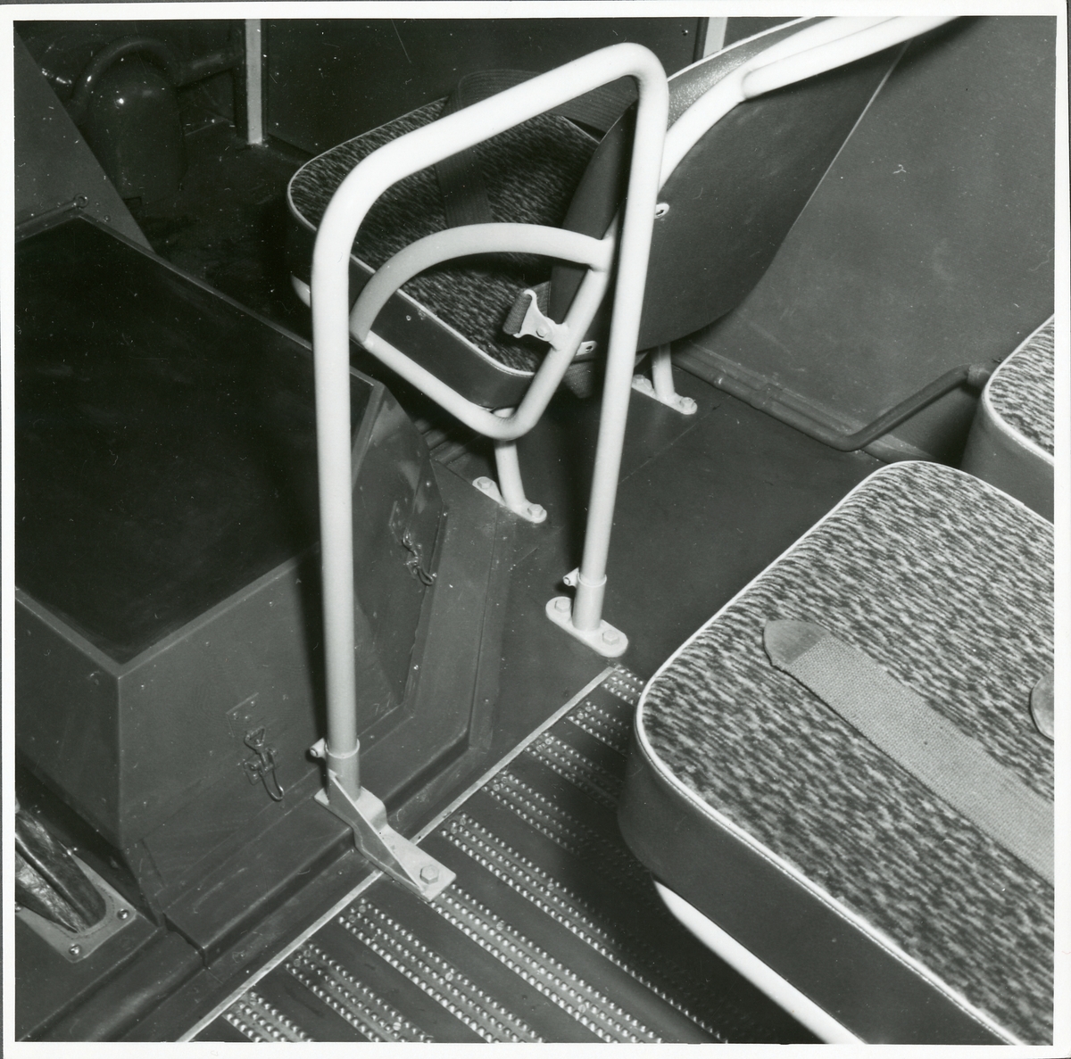 Inredningen i den så kallade "snöbussen", för Statens Järnvägar tillverkad av Svenska Karosseriverken i Katrineholm.
