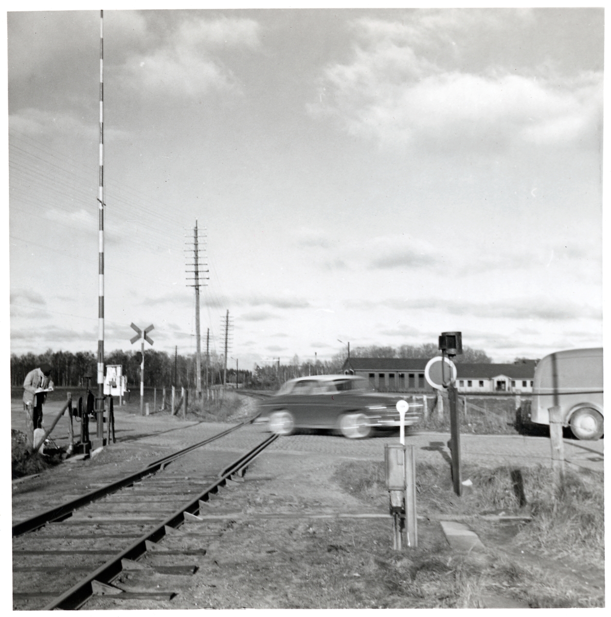 Järnvägsövergång vid Broby, på sträckan mellan Glimminge och Knislinge.