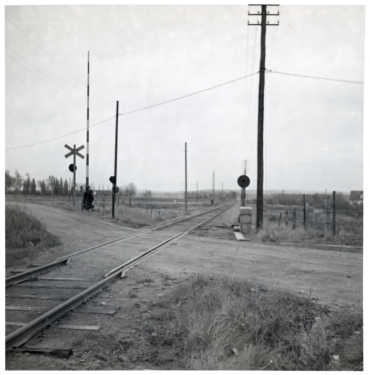 Titel: Järnvägsövergång vid Knislinge, på sträckan mellan Broby och Hanaskog.