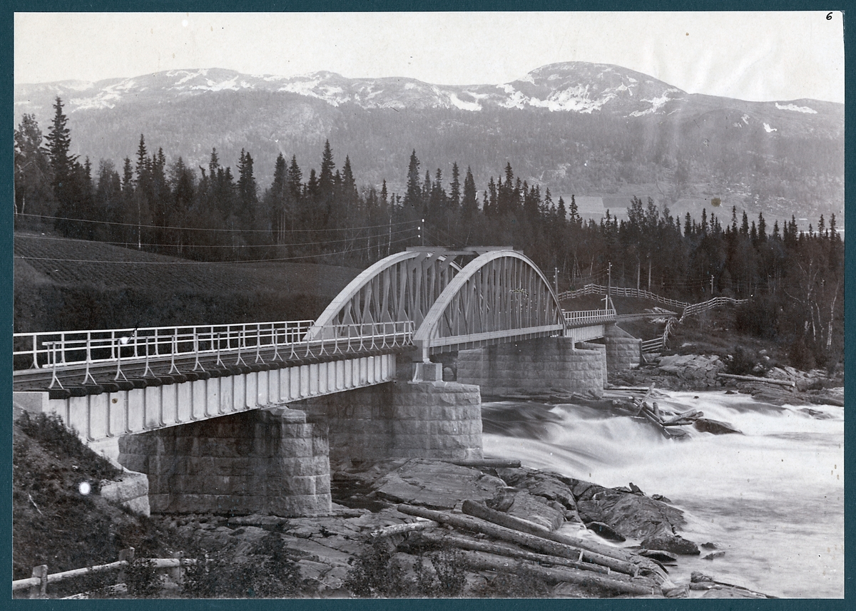 Järnvägsbro över Forsaforsen på linjen mellan Duved och Storlien med Mullfjället i bakgrunden.